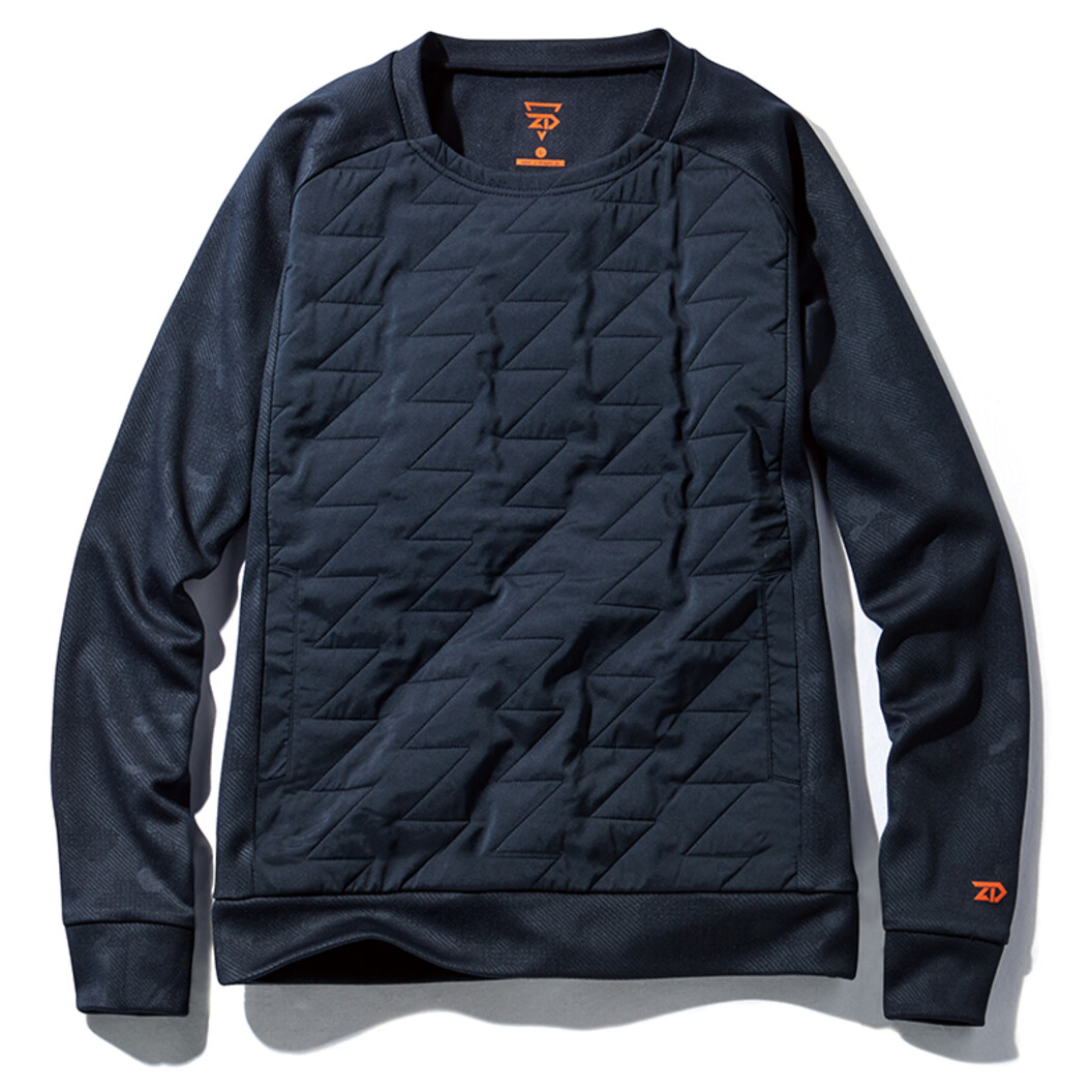 機能中綿を使用したプルオーバー。アウターとしてだけでなくインサレーション(中間着)としても活躍する一着です。