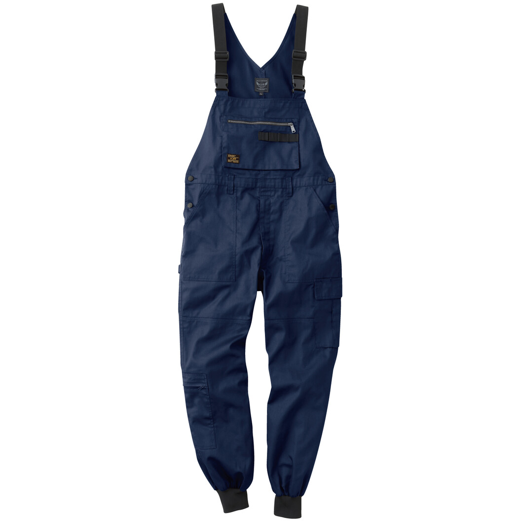 足元スッキリでダボ付きを解消!裾リブ仕様の新定番ジョガーサロペット。定番のT/Cソフトツイルを使用。裾リブで足元スッキリ。レディースサイズ対応商品。