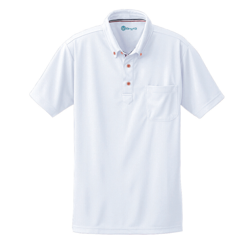 通気性に優れたハニカムメッシュを使用しています。吸汗速乾加工による続くドライ感。衿ボタンダウン仕様です。不快なニオイを軽減するデオドラントテープ付き。レディースサイズ対応商品。