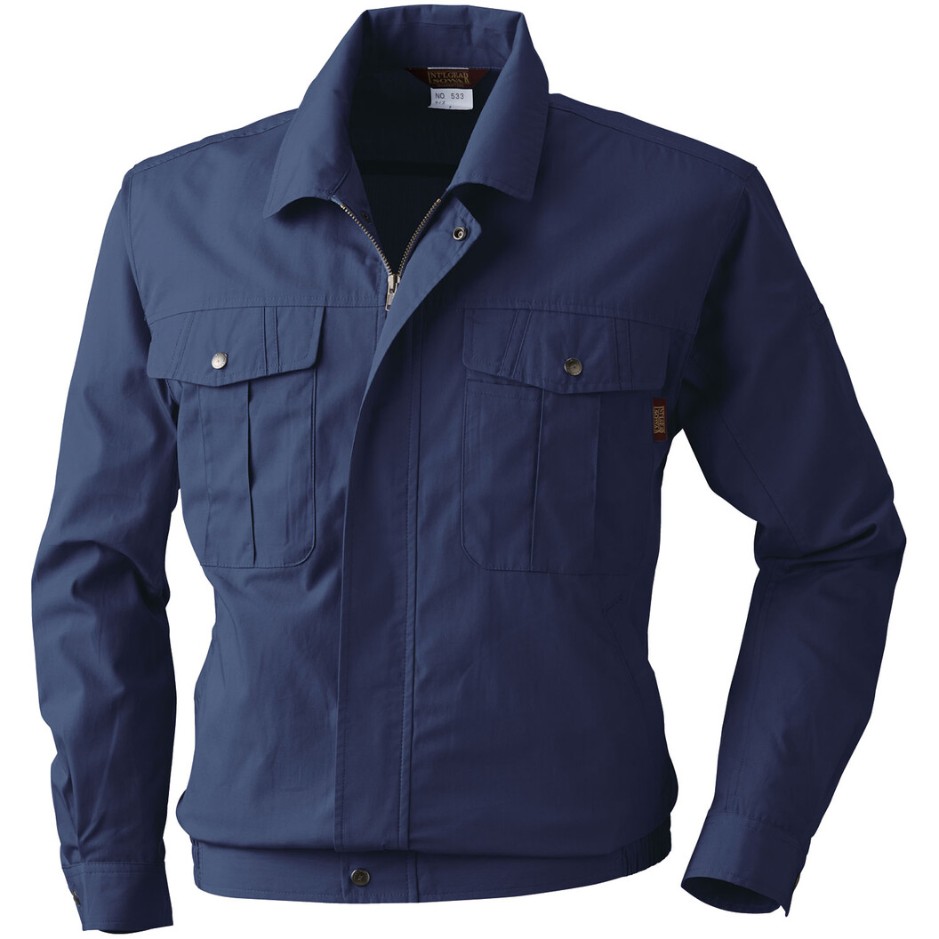 普遍的なシルエットのロングセラー商品!綿100%素材を使用した定番作業服です。肌触りが良く吸湿性のある綿100%素材。火を扱う現場にも対応した仕様。
