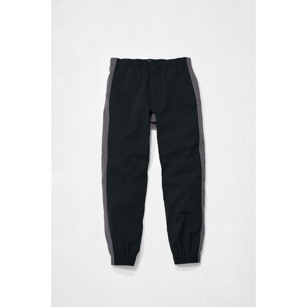 再生ポリエステルを使用したエコ素材に高通気機能素材をミックスさせたエコトラックパンツです。デザイナー忠志のこだわりのつまった逸品!【トラックパンツ×ワークパンツ=新定番】スポーツカジュアルな雰囲気が漂うトラックパンツとワークパンツのディテールを融合させ、カジュアルライクな見た目とワークウェアとしての実用性を両立させた新しいワークパンツです。【軽さとストレッチ性に優れツイルと通気性素材との組み合わせ!】サラッとした手触りのボディー生地はバージンポリエステルとリサイクルポリエステルからなるエコ素材、TecRecyc(テックリサイク)を使用しています。さらにデザインアクセントにもなる配色のメッシュ素材部分にはTORAY ドットエア®を採用し、通気性をプラスすることで快適さをUPさせています。※TecRecycを使用した商品を購入されると1枚あたりにつき10円が森林保全活動に役立てられます。(一般社団法人more trees)【ワークウェアとして】フロントサイドはファスナーポケットとオープンポケットのダブルポケット仕様になっていて、ファスナーポケットには大事なものを収納しつつ、オープンポケットからはハンカチなどがサッと取り出せる便利なディテールが特徴です。ウエストは総ゴム+スピンドルで、よりウエストにフィットする仕様です。【スポーツウェア、カジュアルウェアとして】スポーティな見た目なので作業用途以外にもスポーツウェアとしてはもちろん、ややゆったりとしたトレンド感のあるシルエットはタウンユースで違和感無く着用できシーンレスに活用いただけます。