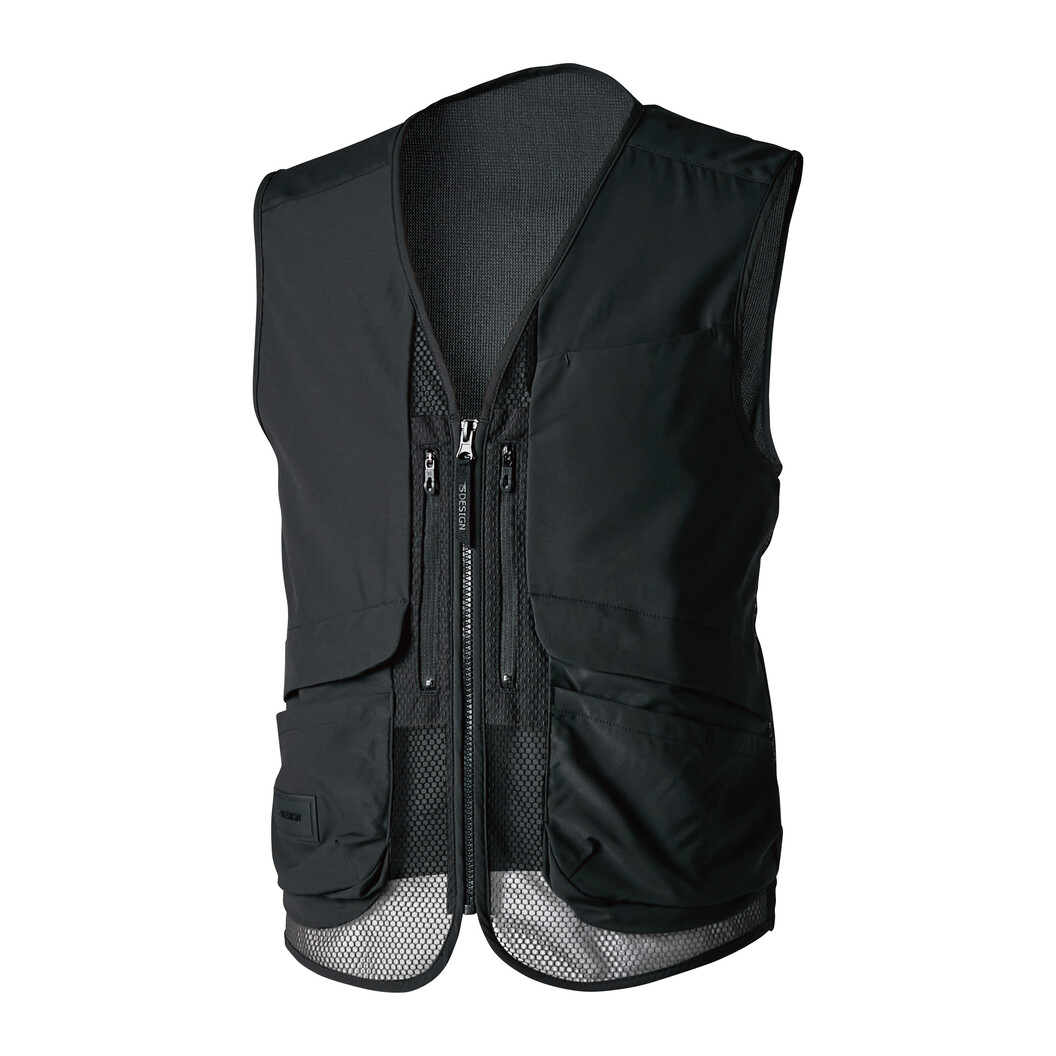 【通気性+接触冷感+消臭】夏の快適素材をハイブリットしたプロ仕様アイテム!【ストレッチタフ×アイスエア】肌に当たる面積の少ない点接触の素材でベタつかず、ドライな着心地の「ストレッチタフ」と高通気、接触冷感性、消臭機能を持つ「アイスエア」の2素材をハイブリットさせています(消臭力:アンモニア90%、酢酸97%、イソ吉草酸99%、ノネナール97%)。【機能性】アイスエアによる接触冷感性と高通気性。ストレッチタフによる耐久性。両胸縦ファスナーポケット。フラップポケット。両脇フラップポケット付き。オリジナルワッペン付き。オリジナルファスナー引き手を使用。