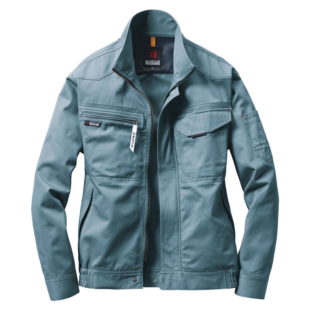 程よくゆとりをもたせたシルエットとソリッドなデザインが魅力!綿100%で、企業ユニフォームの代表格!吸汗性と風合いの良さが特徴の日本製綿100%ライトツイル素材を使用。洗いをかけることでソフトな着用感と優れた防縮性を兼備。脇に通気性を確保するメッシュボディクーラーを配備。