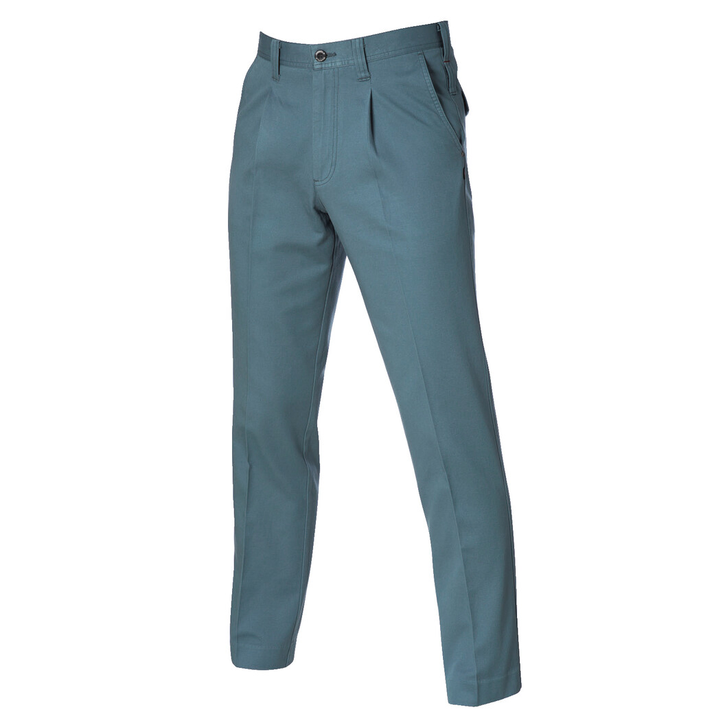 程よくゆとりをもたせたシルエットとソリッドなデザインが魅力!綿100%で、企業ユニフォームの代表格!吸汗性と風合いの良さが特徴の日本製綿100%ツイルクロス素材を使用。製品シリコン洗いをかけることで柔らかくしなやかな着用感と優れた防縮性を兼備。ワンタックによるモダンシルエットで快適な履き心地を約束!