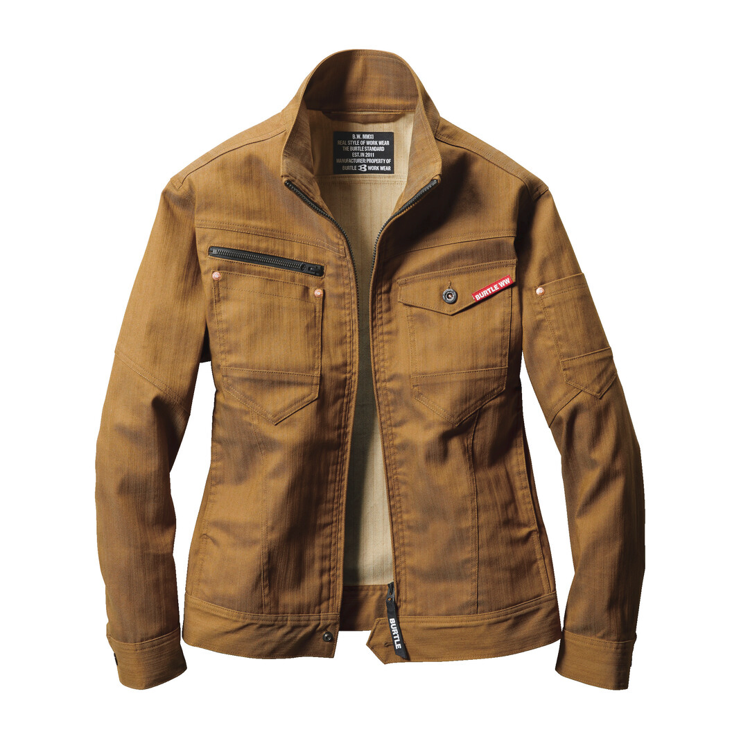 ムラ糸を使い片サイド染めを施して、デニムテイストのエッセンスを取り入れたユニフォーム素材が企業ユニフォームのフォーマルさに程よくカジュアルムードをプラス。しなやかでストレッチ性があり程よく細身なシルエットが企業ユニフォームをスタイリッシュなルックスに演出。シックなアーバンブラウンにミルスグリーンをドッキングさせるギミックで一味違ったユニフォームスタイルにアップデートする手法はバートルの真骨頂。優れた形態回復性と伸縮性を持つ交織ストレッチクロス(伸縮率17%)。ボディーラインに程よくフィットするテーパードシルエット。男女ユニセックスの着用に対応。