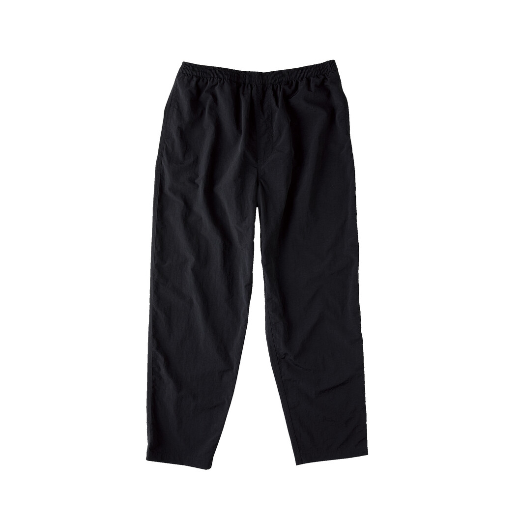 ナイロン100%の撥水加工生地を使用し、快適性と耐久性を追求した機能的なパンツです。アウトドア活動から日常のカジュアルウェアまで、あらゆるシーンで活躍。【ゴム紐付き右ポケット】小物を安全に収納可能。【メッシュ生地のサイド・ヒップポケット】通気性が良く、水抜き仕様で機能的。【ガゼットクロッチ仕様】股下にマチを設けることで、開脚時にストレスフリー。【ウエストの平ゴム&ドローコード】サイズ調整が簡単で、ウエストのフィット感を自由に調節可能。【カン抜きステッチ補強】サイドポケットの耐久性を強化。【テーパードシルエット】ヒップや腿周りにゆとりを持たせつつ、膝から裾にかけて細くなるスタイリッシュな形状。【パッカブル仕様】パンツ全体を右後ろのファスナーポケットに収納可能で、持ち運びに便利。