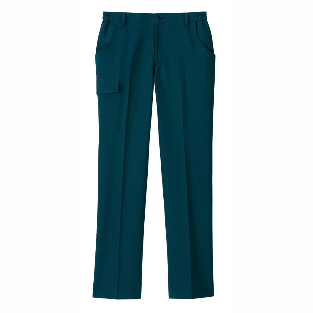 楽な履き心地が魅力の、シルエットにこだわったストレッチパンツです。 素材は強度に優れたポリエステルツイルを使用し、家庭洗濯はもちろん工業洗濯にも対応しています。 制電加工がされているのであらゆるシーンでの使用が可能です。 直線を強調して足をキレイに見せるセンタープレス入りで、ヒップ~ひざ上はゆったりシルエット、ひざ下はスッキリ見えるストレートラインです。 サイド&ヒップポケットに加え、カーゴポケットやキーループなど、充実の収納性もポイント! ウエスト回りが楽な脇ゴム仕様、右サイドのカーゴポケットにはマジックテープ、両ヒップには片玉縁ポケットも付いています。