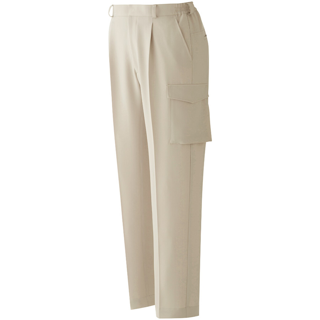 後腰部に伸縮メッシュを施すことで、前後斜めの屈伸の動きをスムーズにしました。 また、従来のパンツに比べ腹部への圧迫や引きつれを軽減します。 開脚運動をサポートするマチを股下部分に入れることにより、開脚姿勢をとった際の引きつれを防止し、快適に作業を行うことができます。 労働安全衛生規則が規定する静電気帯電防止作業服の基準(JIST-8118:1点当たりの帯電電荷量が0.6μC以下)を満たした商品です。 吸水・防汚加工仕様です。 ポケット位置:左右脇ポケット、左右後ろポケット、左右カーゴポケット