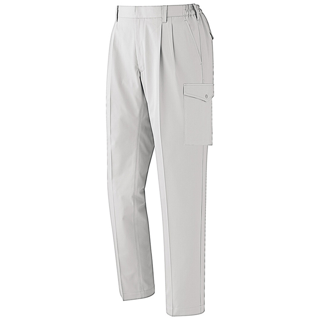 労働安全衛生規則が規定する静電気帯電防止作業服の基準(JIST-8118:1点当たりの帯電電荷量が0.6μC以下)を満たした商品です。 開脚姿勢でも、つっぱりがなくスムーズな仕様。 動きやすさを重視した、ゆとりがあるシルエットのツータックパンツです。 ポケット位置:左右脇ポケット、左右後ポケット、左右カーゴポケット