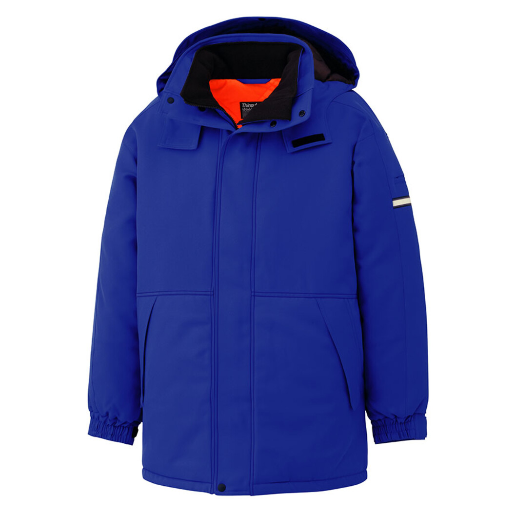 中綿には保温性に優れた3Mシンサレート、高機能中綿ハイロフトを使用。機能的で作業性に優れ、冷凍庫内はもちろん、屋外作業も快適にサポートします。フードサイズアジャスター:フードのひさしの上げ下げを調節できる後頭部の面ファスナーで作業に最適な視界を確保。フードゴムコート:フードの縁の広さを自在に調節でき、頭の動きに合わせて伸縮するゴムコードを採用。ぴったりとフィットして外気の侵入をシャットアウト。二重衿:襟元からの冷気の吹き込みをダブルガード。二重袖:冷たい外気の侵入を防ぎ、冬でもより快適な作業を実現します。ウィンドガード:裾下から入り込む寒気をシャットアウト。衣服内の温度を保ちます。リフライト(蓄光反射材):暗い場所にて発光する蓄光素材に反射素材の機能をプラス。暗所での視認性を高めます。