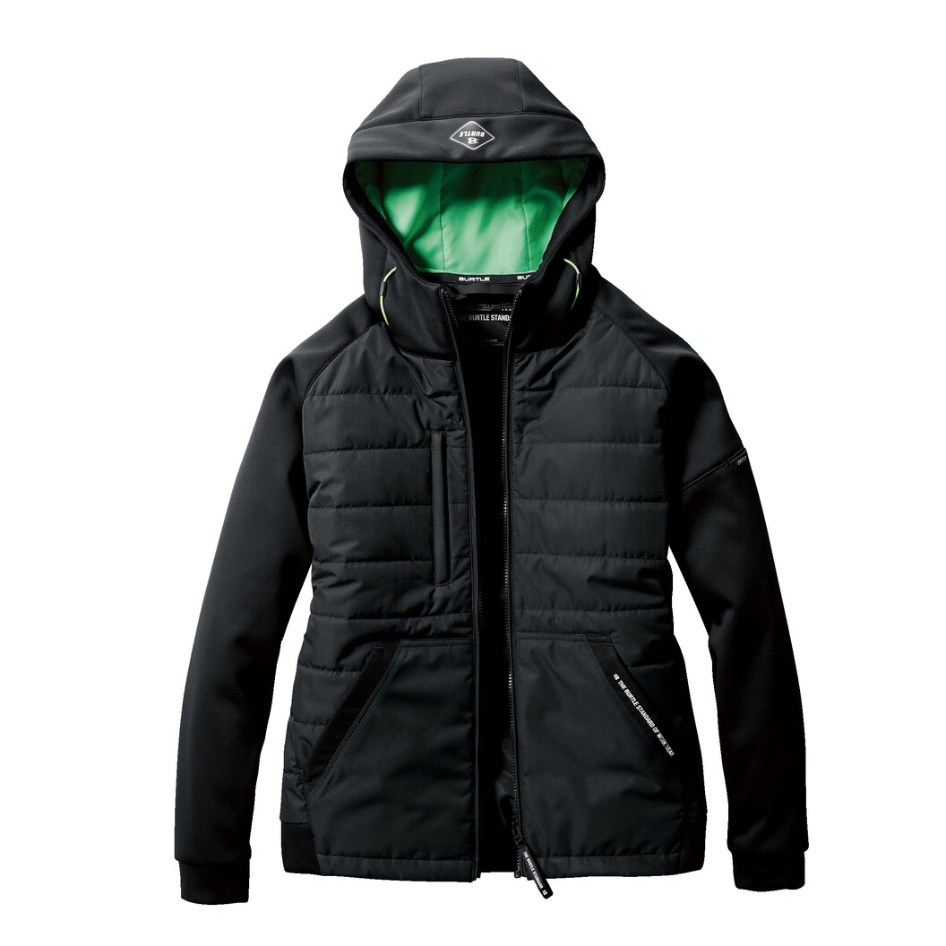ボディには防水性、撥水性、防風性が特徴のライトシェル素材です。袖には腕の動きを妨げない伸縮性に優れた3層防風ボンディング素材です。サーモクラフト(電熱パッド)装着対応モデルです。男女ユニセックスの着用に対応です。