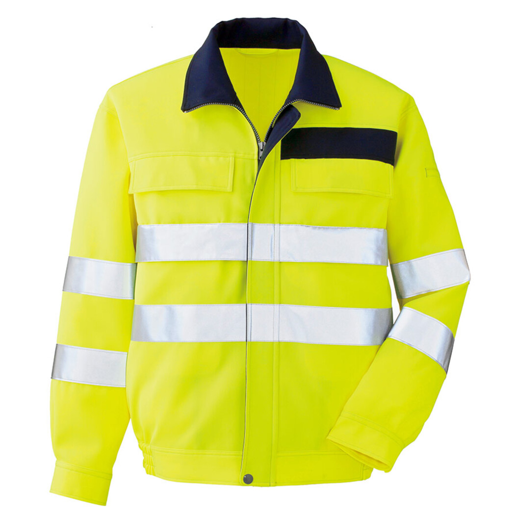 国内の厳しい基準、JIS T8147規格をクリアした、高視認性ユニフォームです。 夜間作業はもちろん、明るい場所(昼間の屋外など)でも高い視認性を確保します。 夜間作業の安全性を考慮して、腕、胸、腰、膝にリフレクター(高性能再帰性反射テープ)を採用し着用者のあらゆる動きに対し全方向から認識可能な設計になっており、強力な反射光で着用者の存在を知らせ、安全性を高めています。 手帳やボールペンなどを収納できる、大きめのポケットを取り付けています。 帯電防止作業服、JIST8118規格適合品。 高視認性安全服、JIST8127規格適合品。 ポケット位置:左右胸ポケット(左胸ペン挿し付き)、左右脇ポケット、左袖ペン挿し