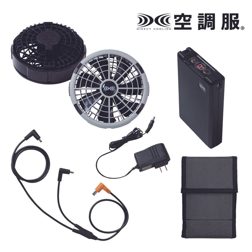 初回購入時にお求めやすいスターターキットです。 内容はファン2個(FA23112)/ケーブル(CB23311)/バッテリー(BT23211)/充電アダプター(CG23411)/バッテリーケース(CA23510)です。 ファン:圧倒的な風量で、大風量・高効率を実現しました。最大風量106L/秒(2個)です。 バッテリー:最大電圧18Vの大容量バッテリーとなります。5段階切替が可能です。 ファンはパーツを取り外して水洗いが可能で、ファンを清潔に保つことができます。 バッテリーは防水防塵で屋外での使用も安心となります。