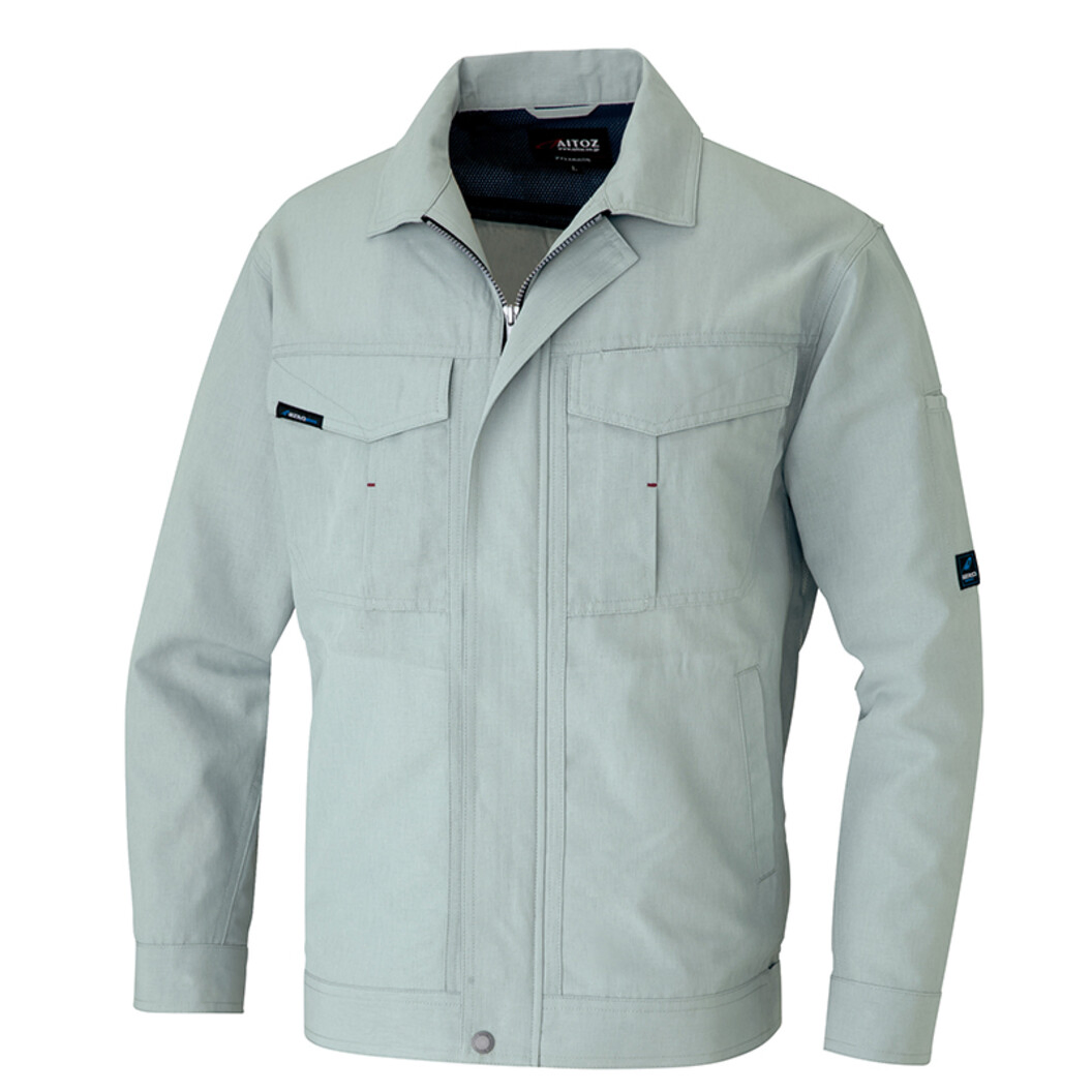作業服としてはもちろん、普段着としても着用できるカジュアルなデザインの長袖サマーブルゾンです。 通気性に優れた素材「オーウィッシュトロピカル」を採用し、夏場のハードワーカーを完全にサポートします。 独自のメッシュ通気構造により、衣服内を快適に保ちます。 ポケットや袖口のフラップなど、細部まで使いやすさにこだわった設計です。