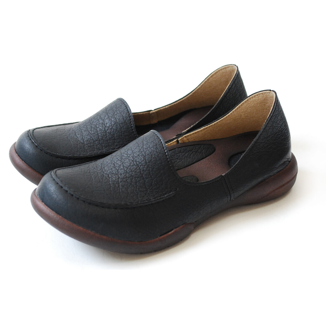 普段履きにも嬉しいドライビングローファーです。 カジュアルはもちろん仕事履きにもお薦めのレディースローファーです。 快適な履き心地だから立ち仕事が多い方にも相性バツグンです。 カカトに芯が入っておらず返りがいいので、急ぎの時など踏んで履いていただくこともできます。