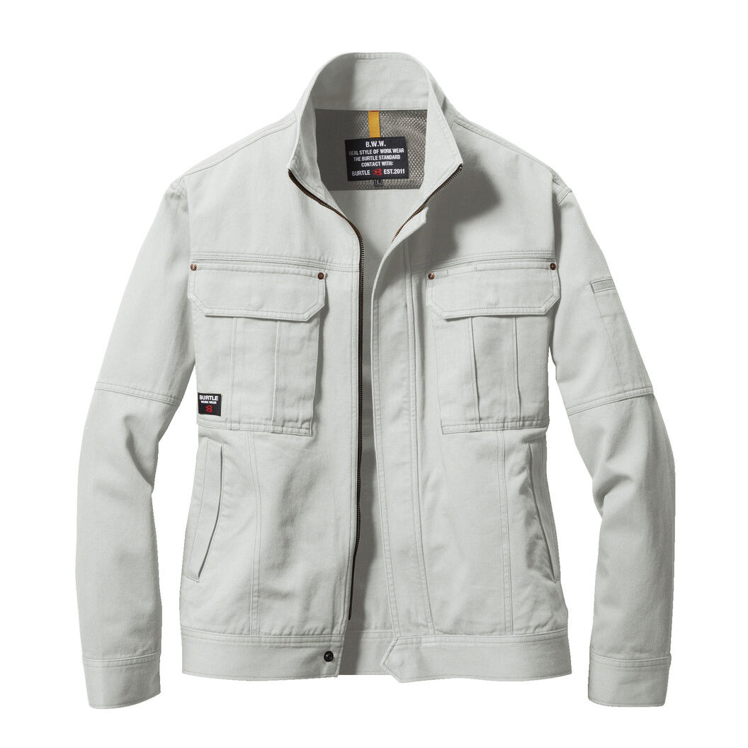 ウォッシュのかかった味わい深いボディーに、大型胸ポケットを配備。アメリカンな合理的さと無骨さをバートルがアップデートした、ミニタリーテイストのオーセンティックモデル!ハードなワークシーンでタフな着用感をもたらすコットンチノクロス素材を用いたミリタリーテイストのオーセンティックモデルです。吸汗性と風合いの良さが特徴の、日本製綿100%チノクロス素材を使用。製品洗いによるコンフォタブル着心地と優れた防縮性を兼備。