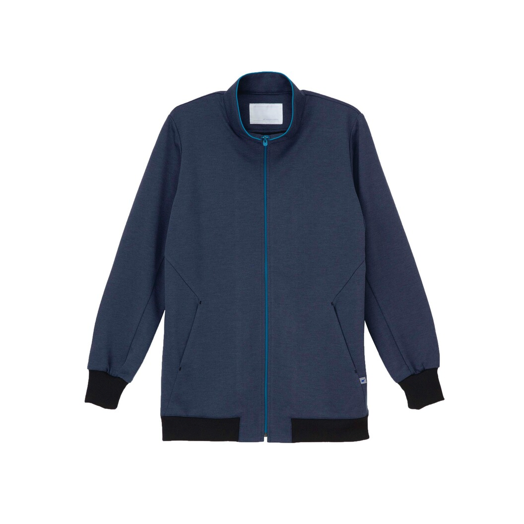 カラーファスナーが元気な印象です。また腕を動かしやすい設計で快適な着心地です。両腰ポケット付き。 ナチュラル感がありやさしく親しみやすい雰囲気の杢調(もくちょう)のニット素材です。肌側に綿を使用しているため吸汗性があり、肌触りが良い素材です。極めて高い伸縮性能により、快適な着用感を提供します。業務用洗濯にも耐えうる形態安定素材です。