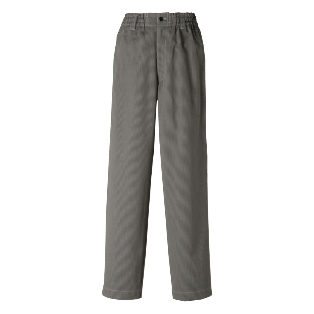 ウエストゴムのイージーパンツです。ブラック×グレーのストライプがデザインポイント。カジュアルですが少し大人のイメージを感じさせる柄ですので、白パンツや黒パンツをこちらに変えてお店のイメージチェンジに着用されるのもオススメです。汚れも目立ちにくい柄でもあります。同生地のエプロン展開もあります。WT7807-9(胸当てエプロン)、WT7806-9(ソムリエエプロン)WT7805-9(腰下エプロン)3型です。
