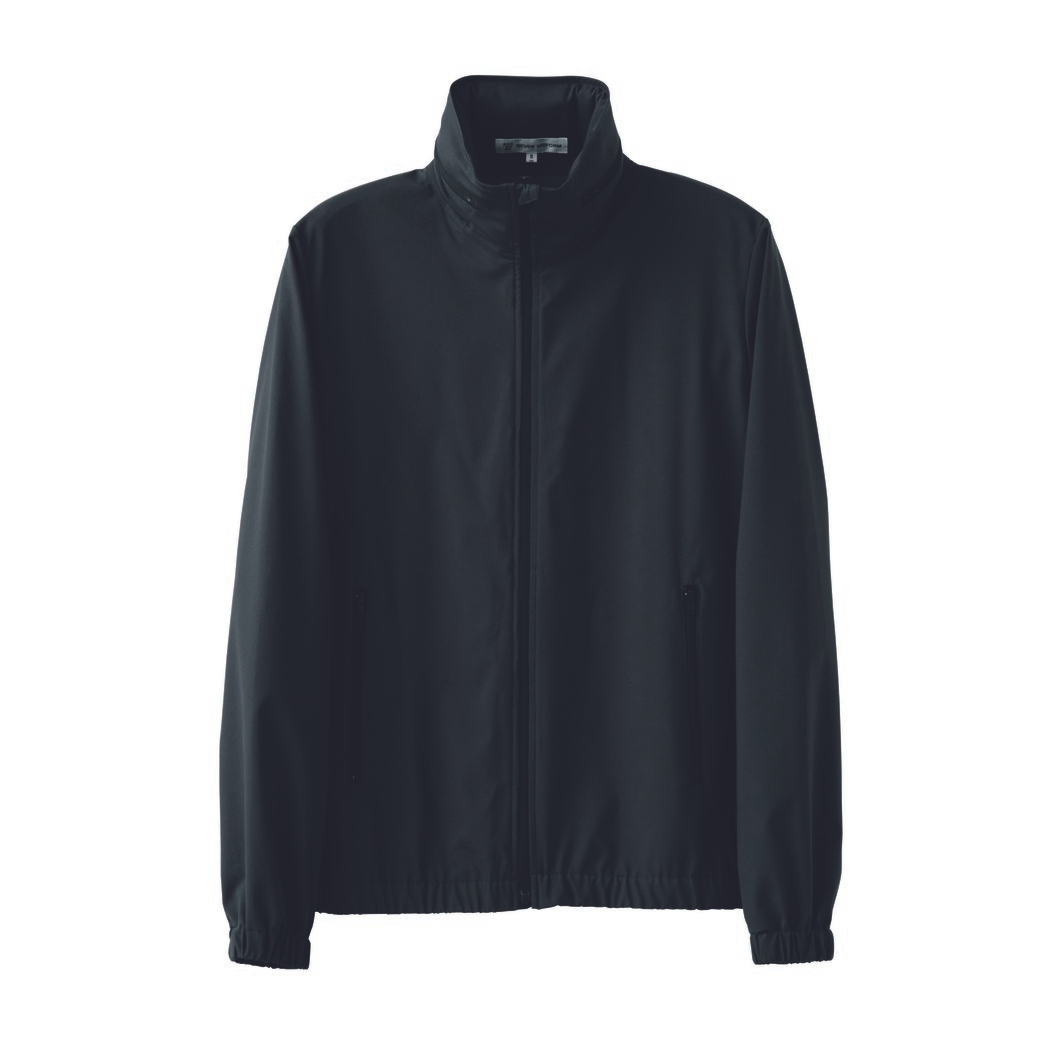 とても薄いリップストップ生地で作られたブルゾンです。軽いです。スタンドカラーにフードが収納されています。フードはしっかり頭を覆うサイズで、調整パイピングもあり頭の大きさにフィットしますので多少の雨風はしのげます。内側左右の腰辺りに簡易ですがポケットあり。表にもファスナー付きポケットが左右の腰にあります。撥水、ストレッチあり。素材もよく、ベーシックなデザインできちんと作っていますので、ブルゾンではありますが品格が保てるアイテムとして開発しました。実際に博物館、美術館など少し動きのある仕事も含む現場で、ジャケットでは仕事しずらいが、というシーンでのスタッフブルゾンとして需要があります。今後そんなサービスシーン、また野外でのサービスが増えていく中で活用できる品格あるブルゾンとしてぜひオススメです。