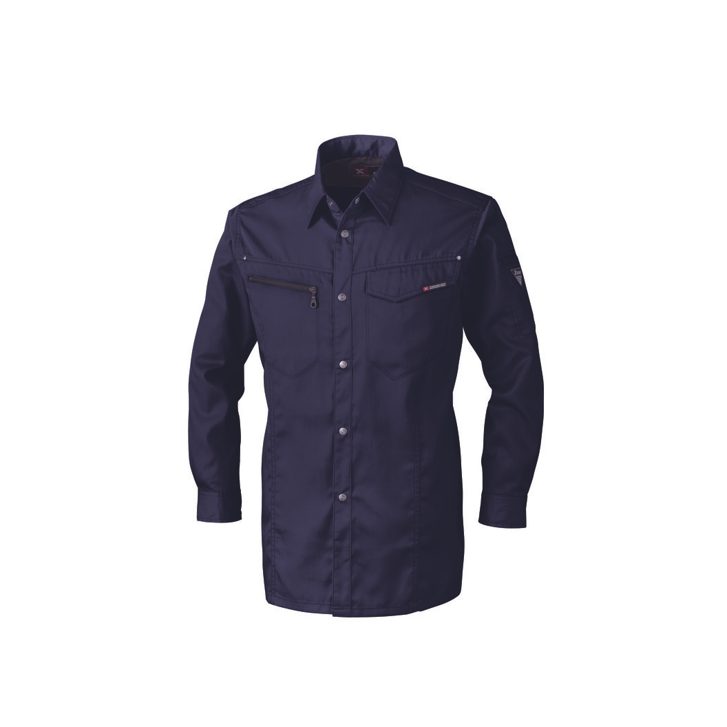 オリジナル機能満載!高機能定番ワークウェア丈夫なポリエステルと綿の混紡素材を使用したワークウェアです。腕の上げ下げ、曲げ伸ばしをラクにするNEWプリーツロン+立体裁断、胸のファスナーポケットとタテ型ポケットで機能性と収納性を兼ね備えた高機能作業服です。