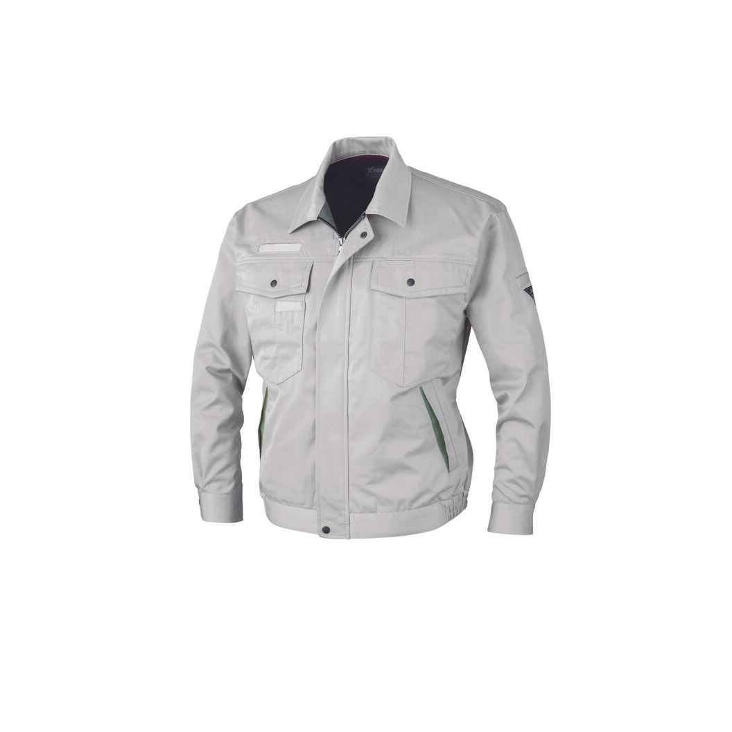 ソフトな風合いのハイブリッドコットンです。大容量収納ウェアです。ポリエステルと綿の混紡素材に加工を施し丈夫でしなやかな風合いの素材です。両胸のペン差し、右胸マルチポケット、内側に大型ポケットを装備した大容量収納ワークウェアです。