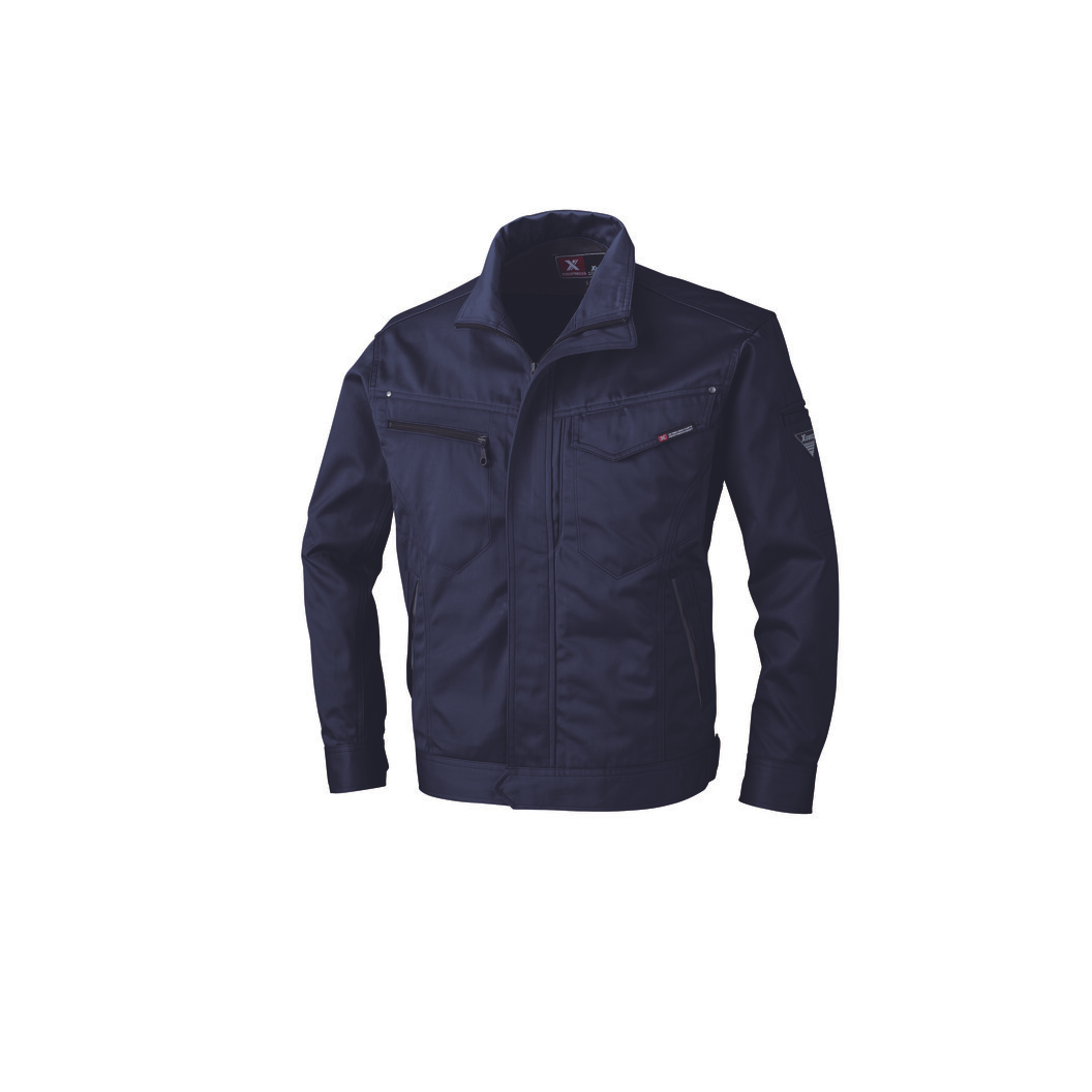 オリジナル機能満載!高機能定番ワークウェア丈夫なポリエステルと綿の混紡素材を使用したワークウェアです。腕の上げ下げ、曲げ伸ばしをラクにするNEWプリーツロン+立体裁断、胸のファスナーポケットとタテ型ポケットで機能性と収納性を兼ね備えた高機能作業服です。
