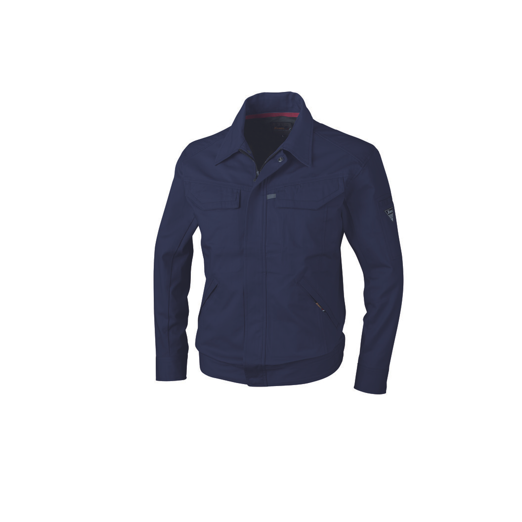 突起物の少ない綿100%ワークウェア。丈夫なツイル生地を使用しています。ブルゾン前面のフラップや袖口は付属を隠した仕様、脇ポケットは逆玉縁仕様で火熱を扱うタフでハードな現場に対応する機能と工夫があります。