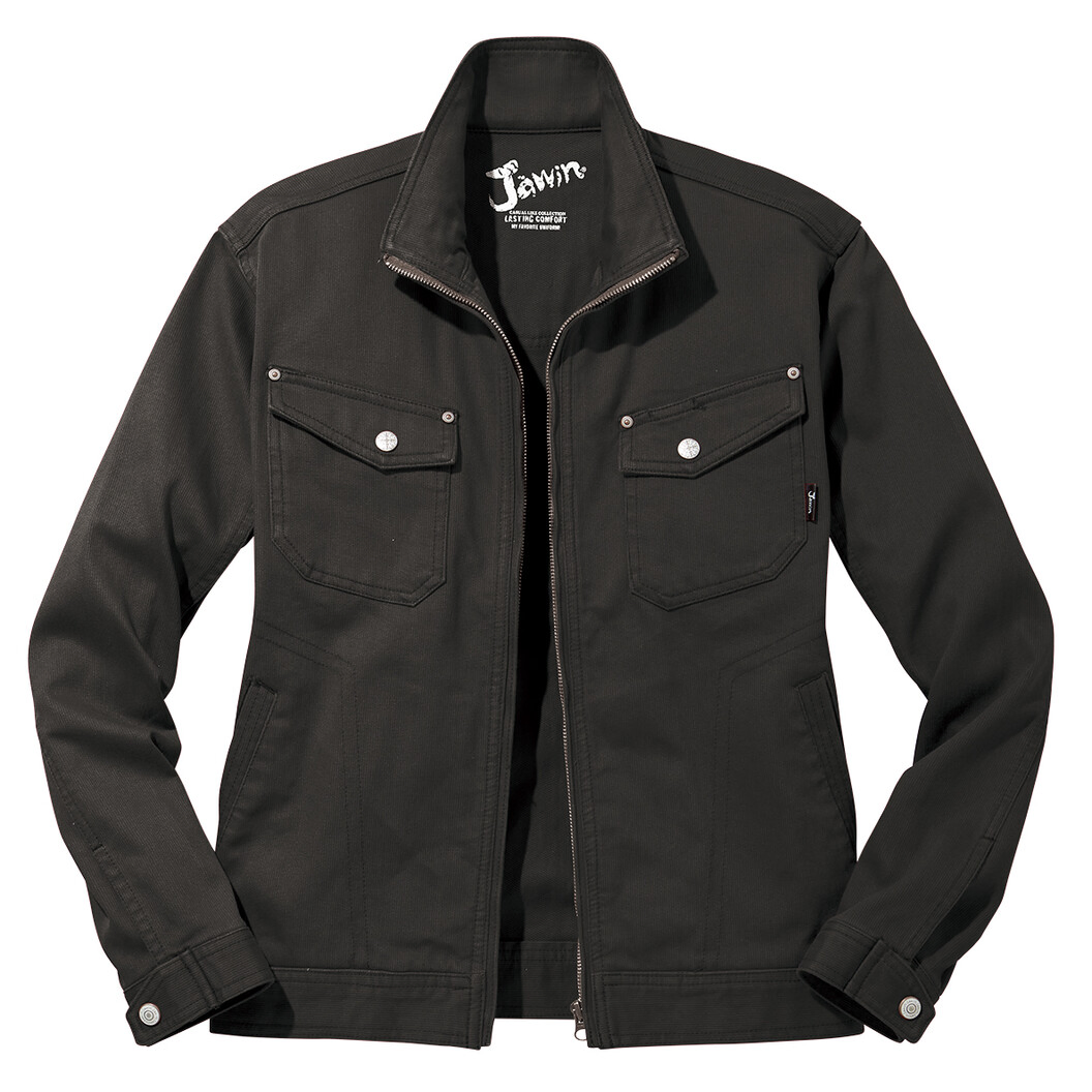 スタイリッシュなデザインが男らしさを演出するデニムテイストなワークウェア。綿100%ドビーを使用し、デザインと頑丈さを両立しました。