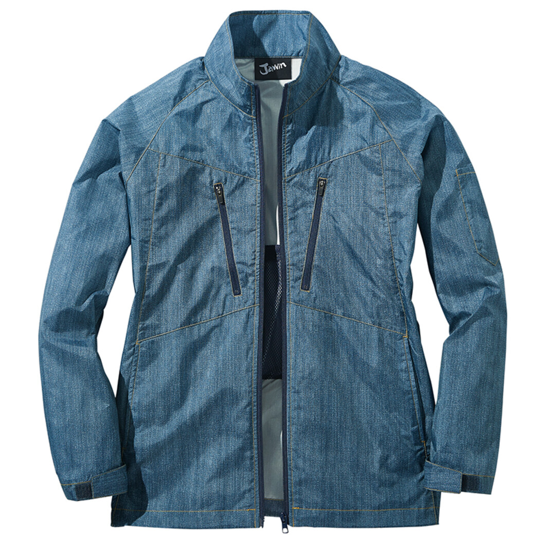 存在感際立つ空調服(R)ジャケット 光沢感のあるカモフラ柄とデニム柄をプリントしたカジュアルテイスト空調服®です。