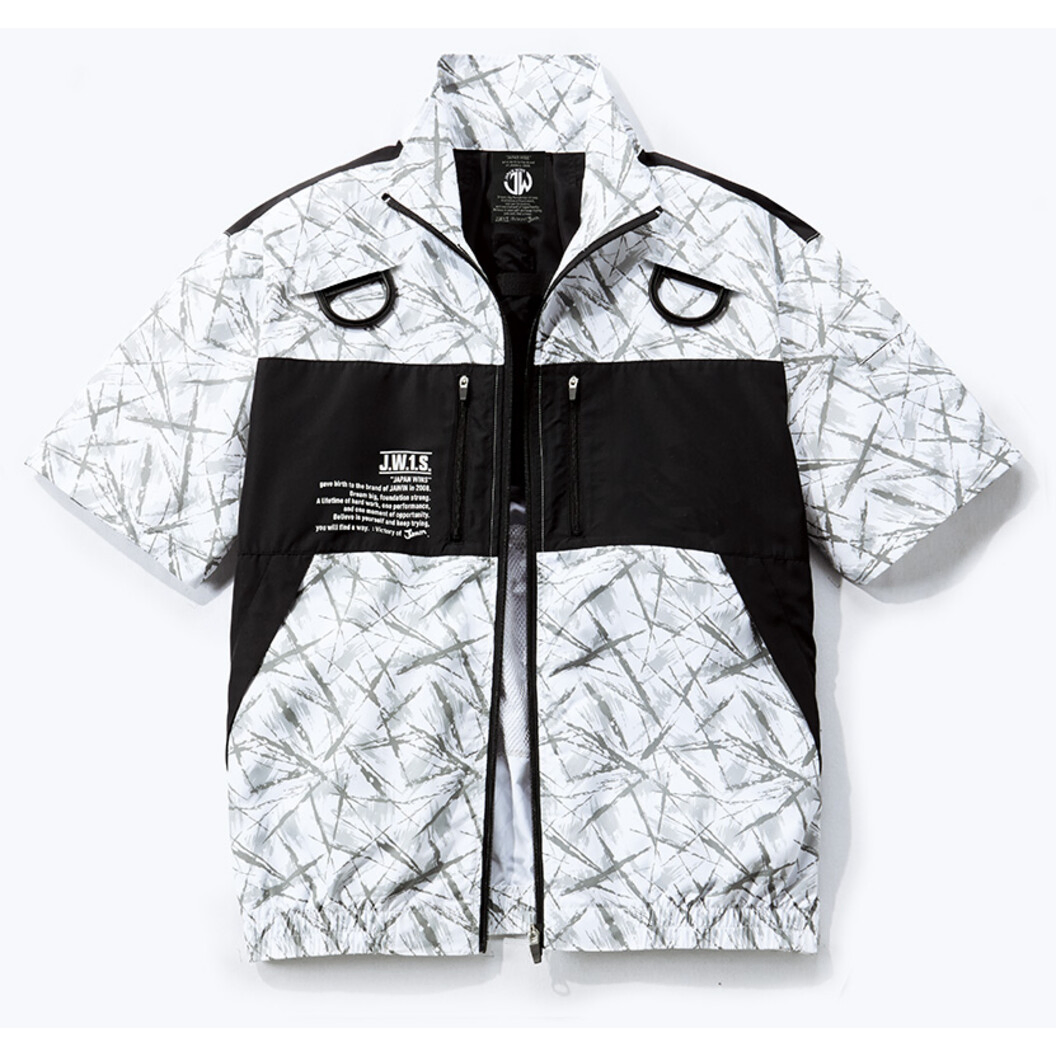 プリント柄が存在感際立つフルハーネス対応空調服® 収納可能なフックハンガーや個性的なプリント柄とJawinロゴプリントが特長の空調服®です。
