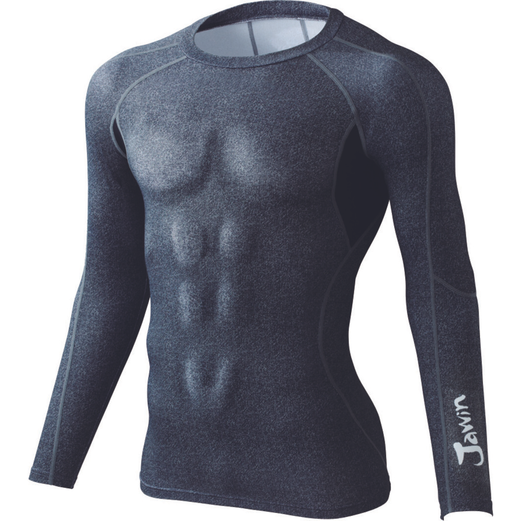 COMPRESSION WARM INNER 吸湿発熱加工×機能的なカッティング。寒い冬に最適。吸湿発熱インナー。デニム調のプリントを施した吸湿発熱インナーです。